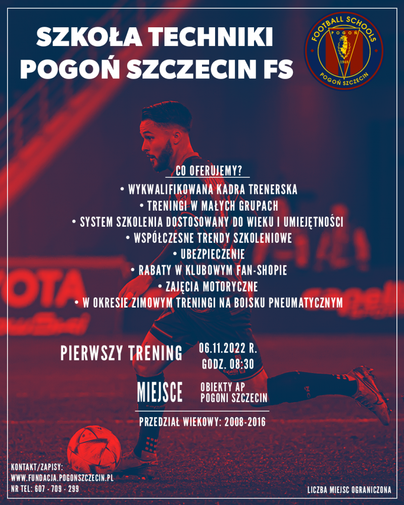 Kolejny ważny projekt Pogoń Szczecin FS – Szkoła Techniki – na dniach ujrzy światło dziennie. Już 6 listopada o godzinie 8.30 zapraszamy wszystkich młodych piłkarzy na dzień otwarty zajęć treningu indywidualnego, który odbędzie się na hali pneumatycznej przy stadionie Pogoni Szczecin przy ul. Karłowicza 28. Udział w zajęcia jest darmowy. Ilość miejsc jest ograniczona i obowiązują zapisy.
